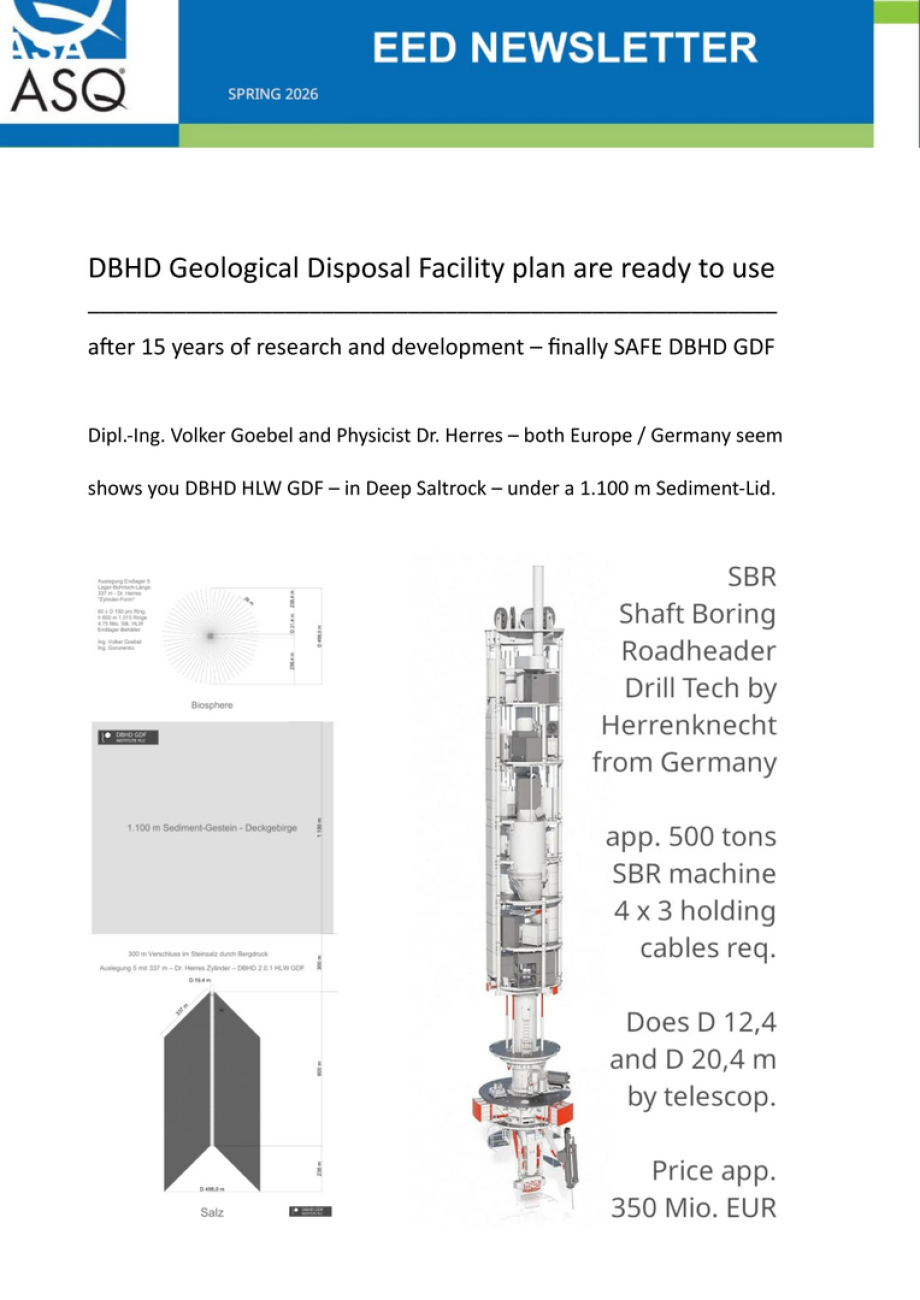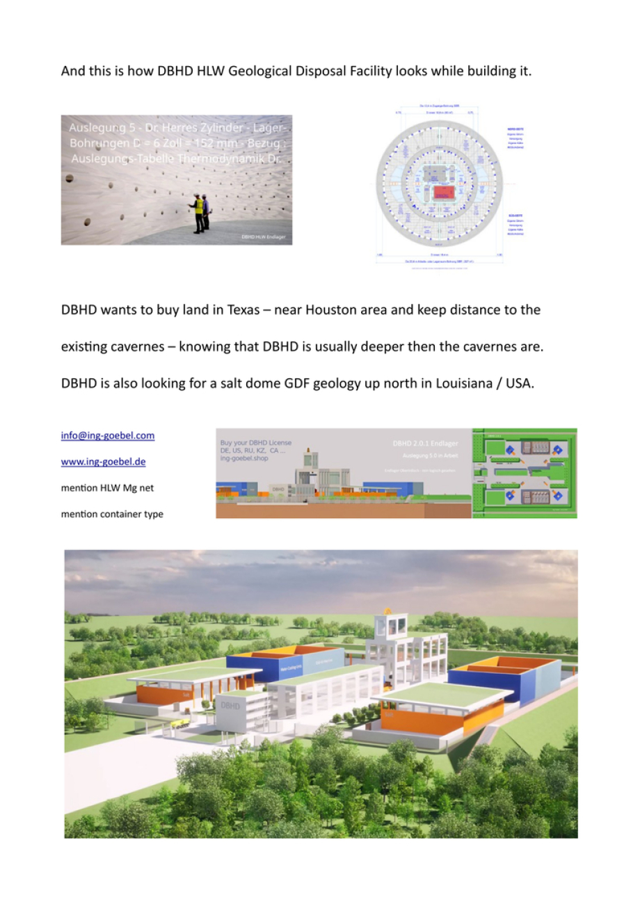 >>> Hello America the beautiful - Dear beloved USA - your people suffer form the 90.000 tons ! HLW nuclear waste and probably 1,4 Mio. m3 ! off low level waste - For the Mid Level Waste you have WIPP - DBHD does rest - and you have the deep saltrock geology.