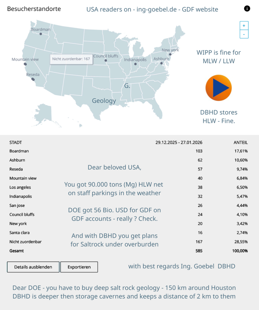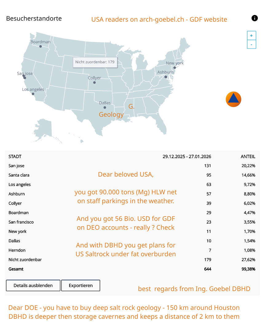 >>> Who are you ? - You are reading Geological Disposal Facility Websites Who are you ? Pensioneers ? Protesters ? Neighbours ? - or are you DOE - or are you drilling and geology companies - write to - info@ing-goebel.com -